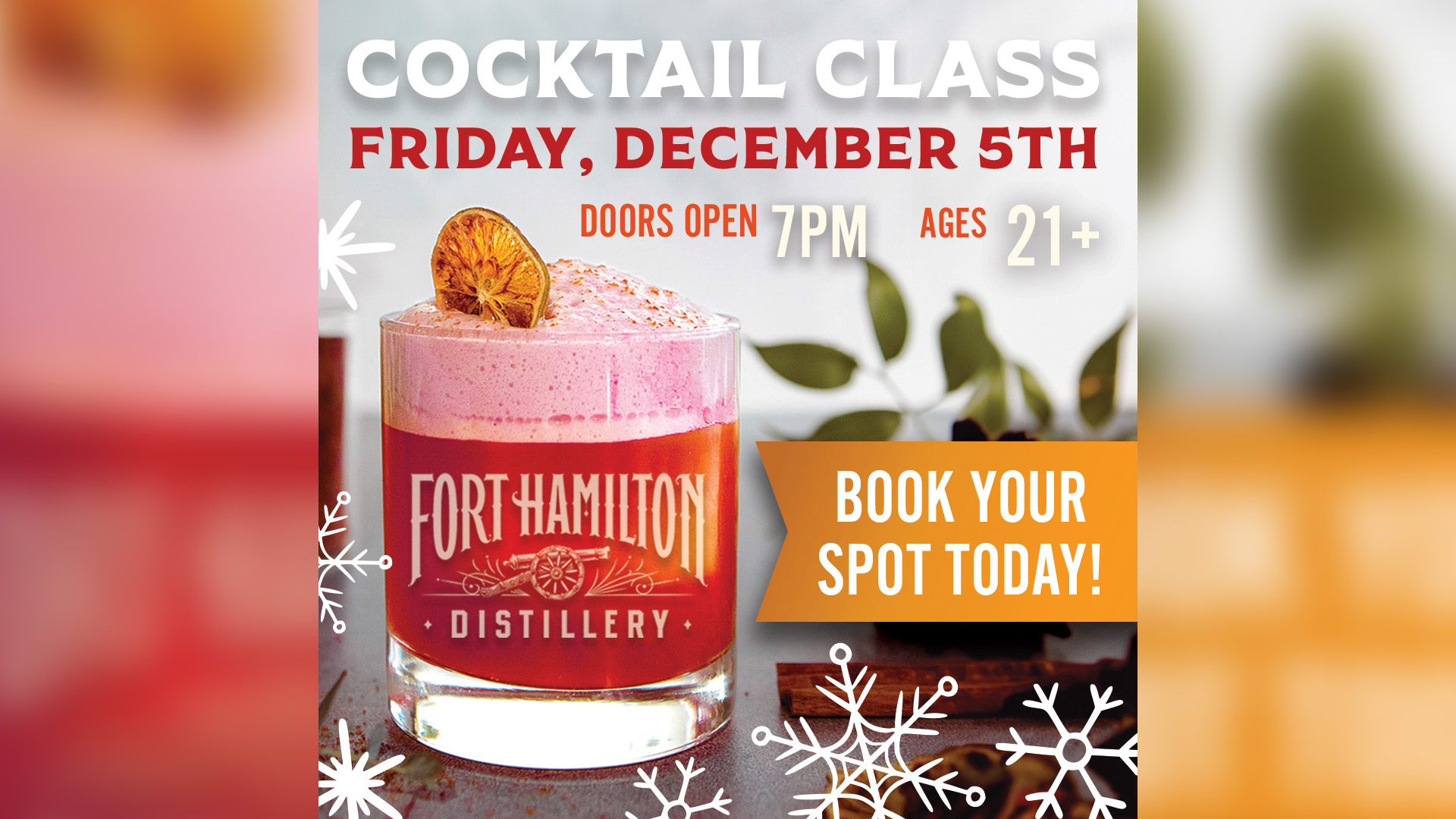Join us Friday, December 5th right here at Fort Hamilton Distillery as we shake, stir, and sip through the history of festive cocktails and craft a few seasonal treats of your own.