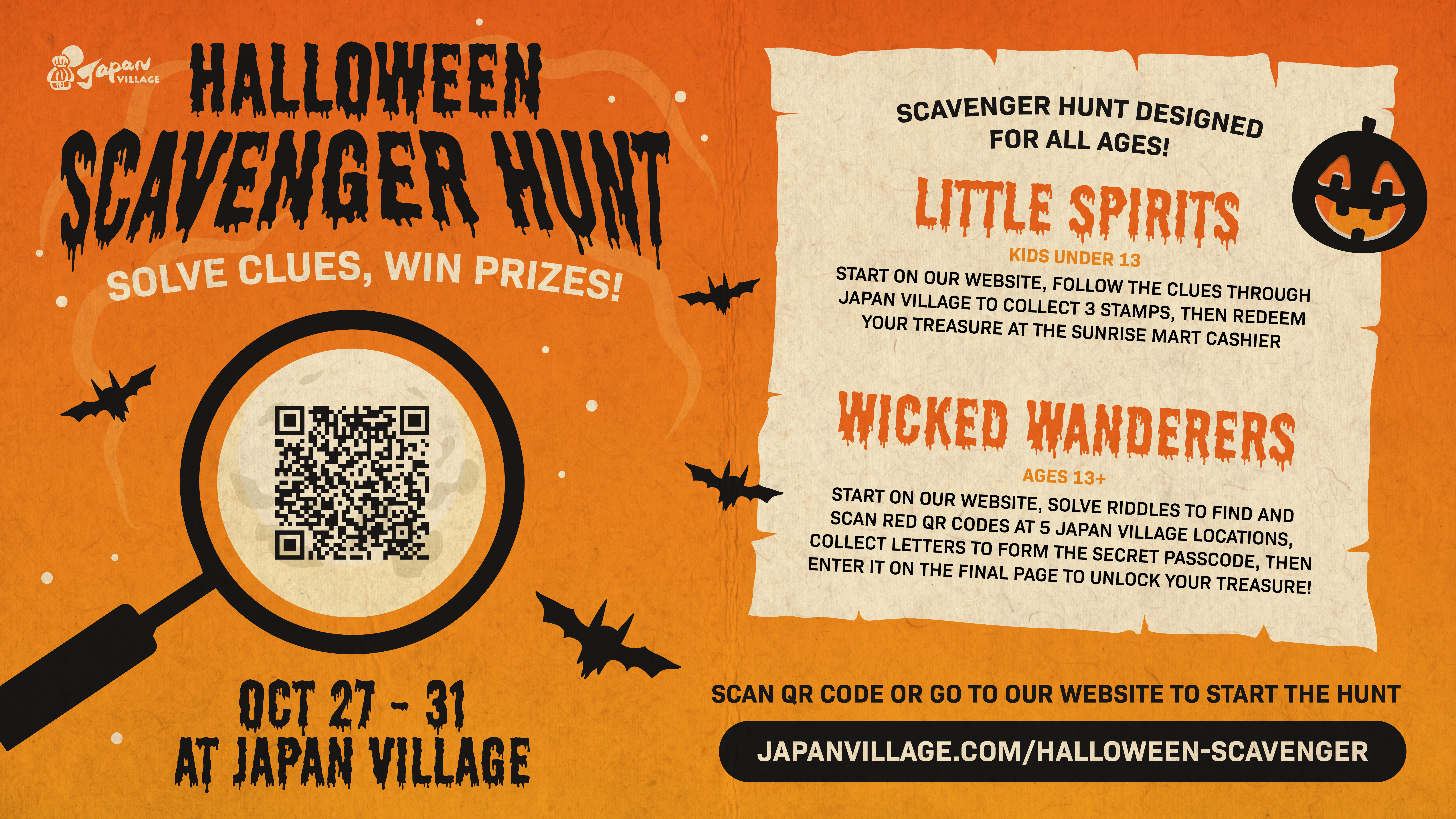 Clues + further instructions drop OCT 27 on our website!🔍 japanvillage.com/halloween-scavenger